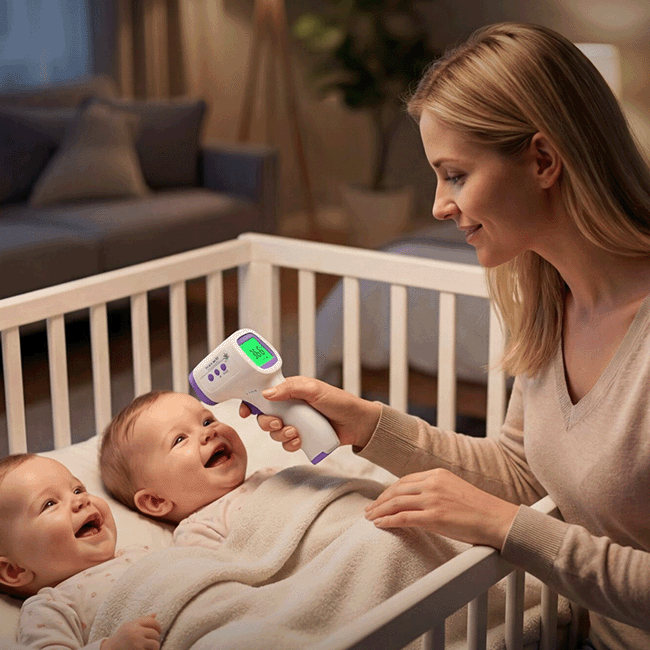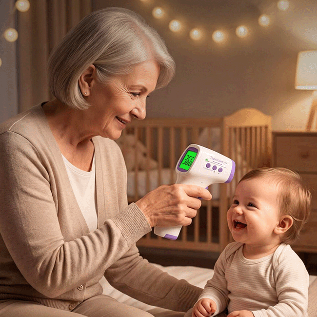 Никаких кнопок ВКЛВЫКЛ, просто спустите курок наставив инфракрасный термометр на рекомендованную область тела и получите мгновенный результат на подсвеченном экране. Никаких лучей света и резких звуков, которые могут напугать новорожденного. После измерения просто оставьте в покое термометр и он отключится самостоятельно в течение 30 секунд бездействия.