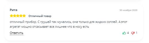 Зручність використання та ефективність – характеристики виділяють електронний назальний аспіратор, відгуки на який наведено вище. На модель “грушка” назальний аспіратор відгуки зустрічаються все рідше, і більшість про те, як її поміняли на іншу модель. Але ми знайшли один: